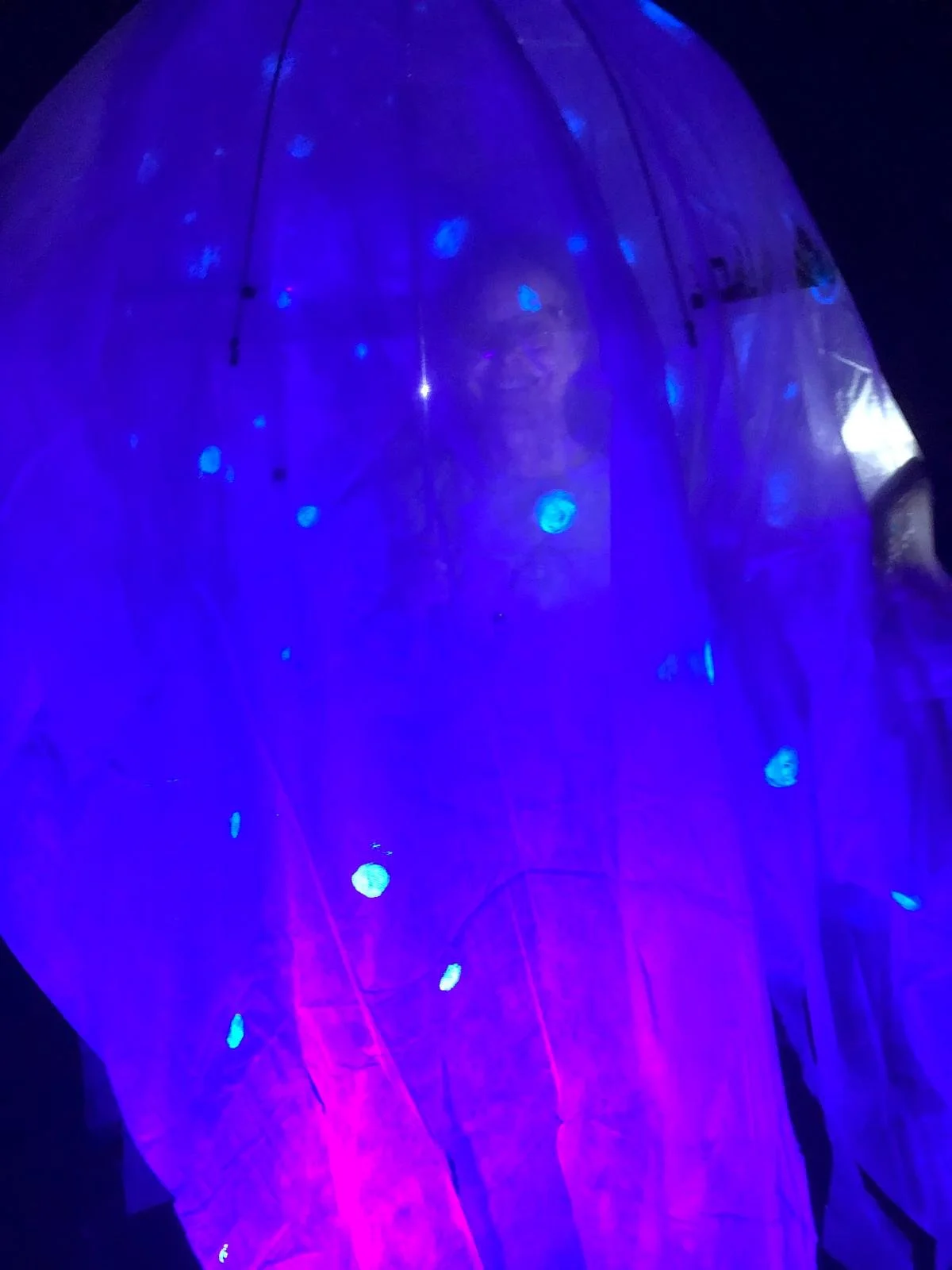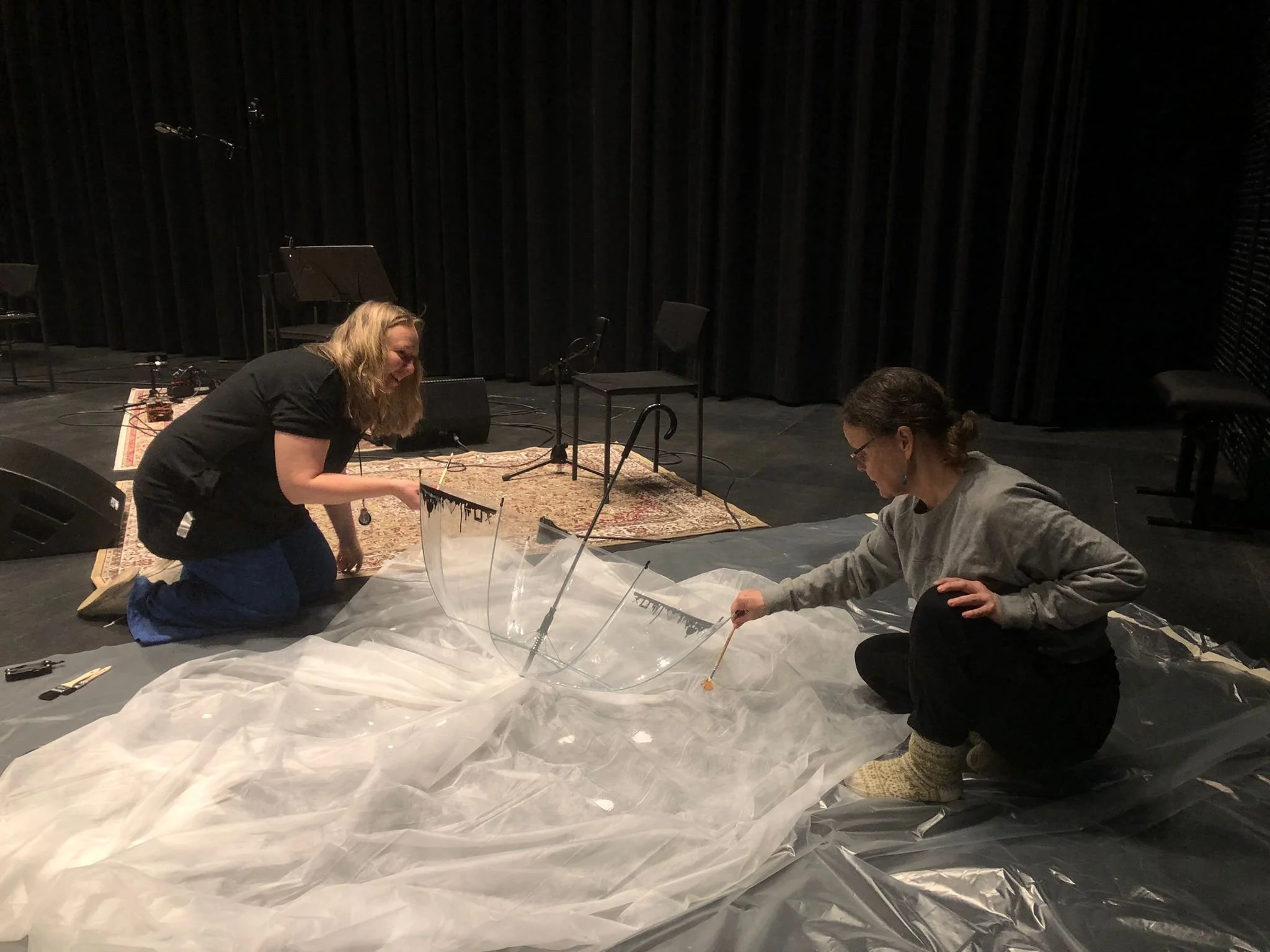 We held a jellyfish workshop with researcher zembalis player Assi Karttunen and lighting designer Sirje Rouhtula for the performance Fluorscene - Sounds of the Deep Sea. Several glow-in-the-dark jellyfish were created in the Black Box of the Music Hall for the January performance.